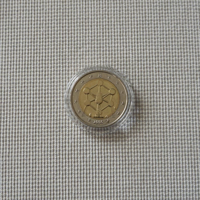 An image of the Atomium in the center of the coin and the engraver’s initials to right with two mintmarks near the base. The outer ring of the coin features the 12 stars of the European Union, the letter ‘B’ and the year of mintage ‘2006’.