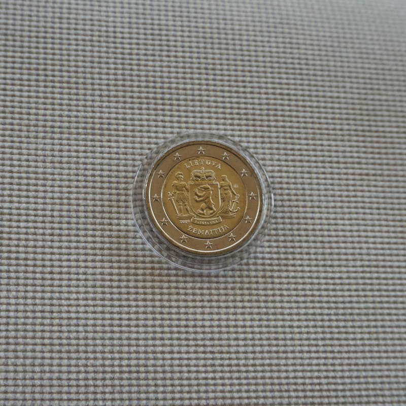 The centre of the national side of the coin features a bear standing on its hind legs, with a chain collar on the neck. It has been depicted in the coat of arms of Samogitia since the 16th century. The bear is situated against a shield topped with a crown, which is held by an armoured soldier (a symbol of courage, sacrifice and patriotism) and a goddess with an anchor (a symbol of hope). Below is a Latin inscription PATRIA UNA (one fatherland).The composition is surrounded by inscriptions LIETUVA (Lithuania) and ŽEMAITIJA (Samogitia), year (2019) and the mintmark of the Lithuanian Mint. The coin’s outer ring bears the 12 stars of the European Union flag.