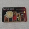 The design is a mix of two major elements of the Erasmus programme: the original intellectual inspiration, Erasmus himself, and the allegory of its influence over Europe. The first one is symbolised by one of the most known depiction of Erasmus. The second one is symbolised by a beam of links going across the coin from a beacon to another, representing the numerous intellectual and human exchanges between the European students. As a reference to Europe, some of these links form other stars, born from the synergy between the countries. The figure 35, for 35th anniversary comes out from the stars in a contemporary graphical style._x005F_x000D_