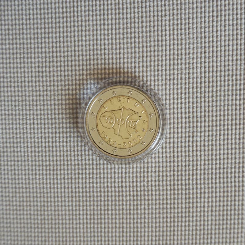 The national side of the coin depicts the contour of the map of Lithuania arranged as a basketball court in the centre, which signifies that basketball has been played in Lithuania already for 100 years. The coin also features the inscriptions LIETUVA (Lithuania), 1922-2022 and the logo of the Lithuanian mint, its manufacturer, arranged in a semi-circle around the centre. The coin’s outer ring bears the 12 stars of the European Union flag.