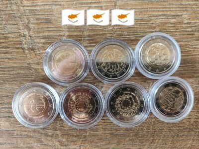 7 UNC COINS OF 2 EURO FROM CYPRUS