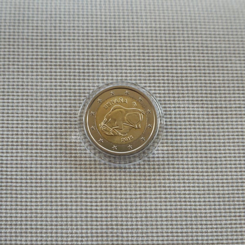 Bison painting from the Cave of Altamira located in Cantabria. The coin’s outer ring bears the twelve stars of the European Union.