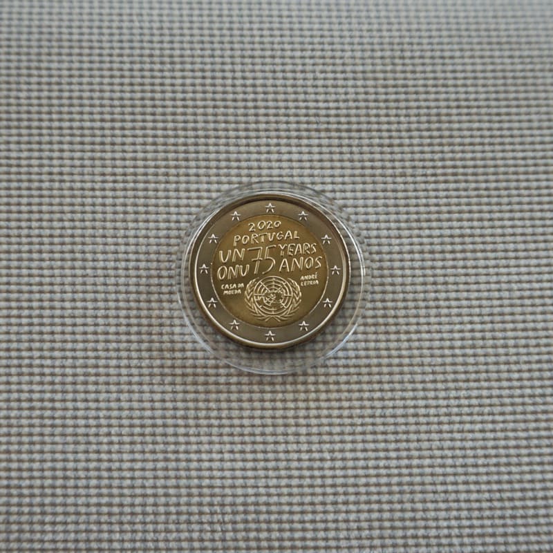 Portuguese ‘ONU’ and ‘ANOS’. At the left side is the name of the mint ‘CASA DA MOEDA’ and at the right side is the_x005F_x000D_