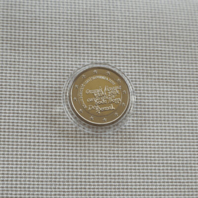 The coin’s outer ring depicts the 12 stars of the European flag.
