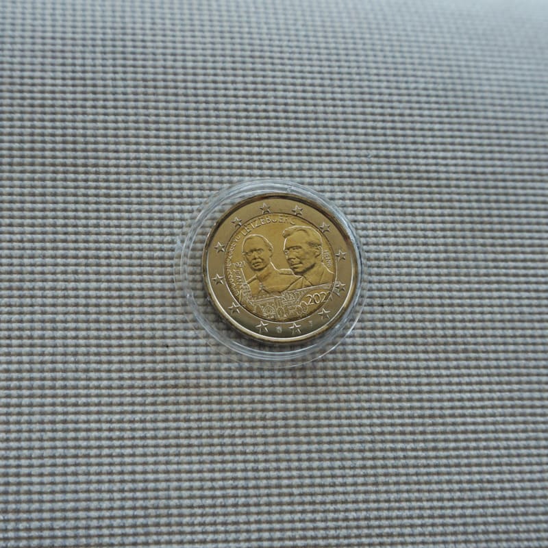 The design depicts on the left hand side the effigy of the Grand Duke Jean and on the right hand side the effigy of the Grand Duke Henri. Close to each effigy, the respective name of the Grand Duke is specified, as well as the year of birth ‘1921’ of the Grand Duke Jean. Below the effigies, an outline of Luxembourg city is represented. At the left, the text ‘GROUSSHERZOGE VU LËTZEBUERG’ designating also the issuing country is depicted in circular form. The year-date ‘2021’ is shown at the bottom right._x005F_x000D_