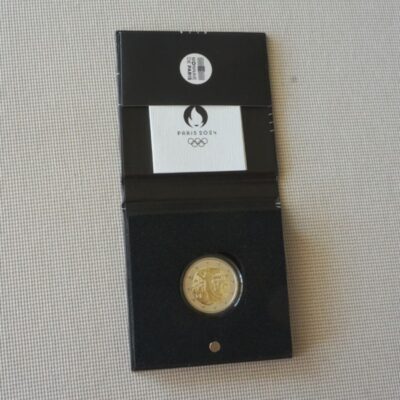 The design of the coin depicts the Sower, a national figure and icon of French numismatics, practicing pugilism, the forerunner of boxing, in reference to the Antic Olympic Games. Her silhouette is in the foreground in front of the PontNeuf and its surroundings, typical of the Ile de la Cité area, a key element of the Parisian landscape. In the background, an athletic track, into which the emblem of Paris 2024 is inserted on the right-hand side, is represented. The year date, the RF mention and the mintmarks are inserted under the arch, on the bridge railing and in the Seine._x005F_x000D_