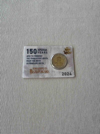 The design features a portrait of Penelope Delta. The theme is bordered by the wording ‘ΠΗΝΕΛΟΠΗ ΔΕΛΤΑ 1874-1941’ (‘PENELOPE DELTA 1874-1941’) and ‘ΕΛΛΗΝΙΚΗ ΔΗΜΟΚΡΑΤΙΑ’ (‘HELLENIC REPUBLIC’). To the left is a palmette (mintmark of the Greek Mint) and to the right the minting year. Penelope Delta was a pioneer of children’s literature in Greece. Generations of Greek children have been raised with her books, which remain popular.